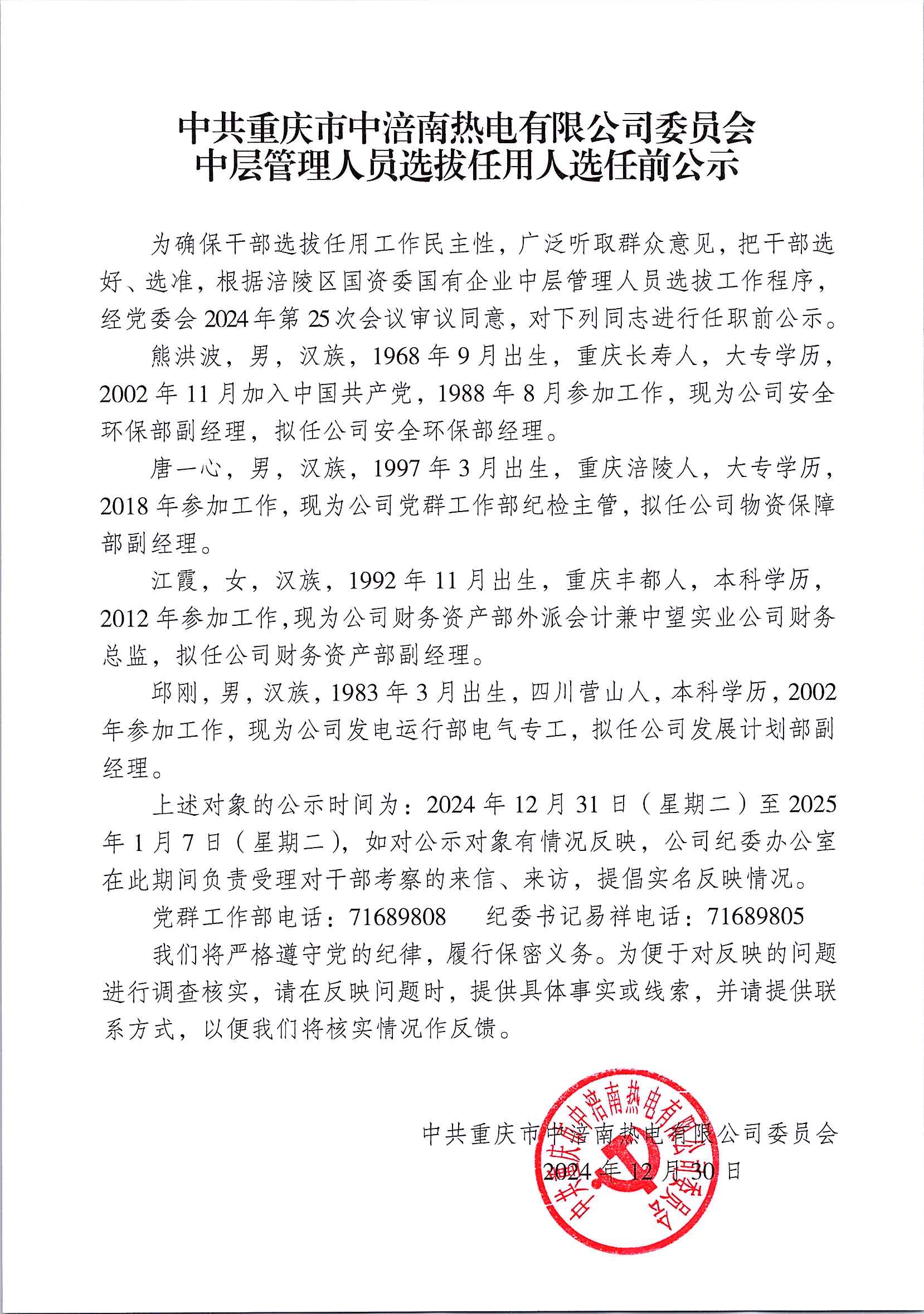 中层管理人员选拔任用人选任前公示